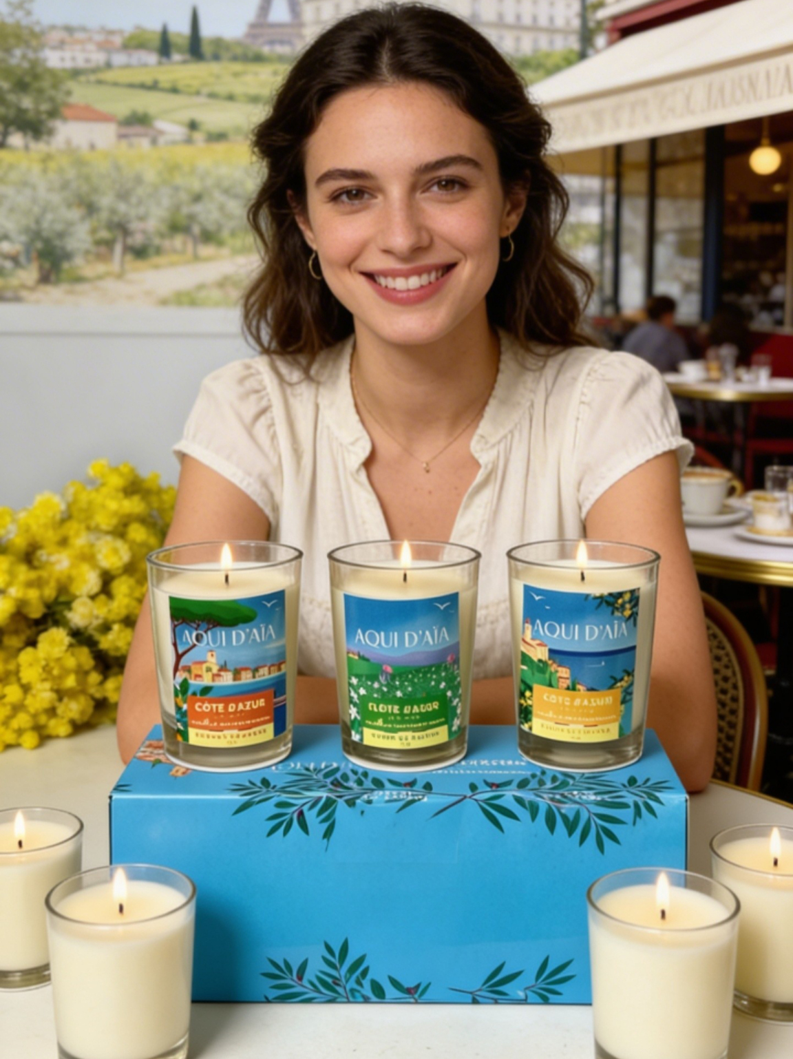 Côte d’Azur France is partnering with Aqui d’Aïa to offer you these scented candles. Our promise: Beauty, Well-being, Naturalness, Responsibility