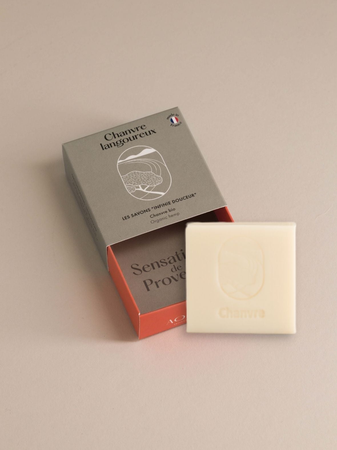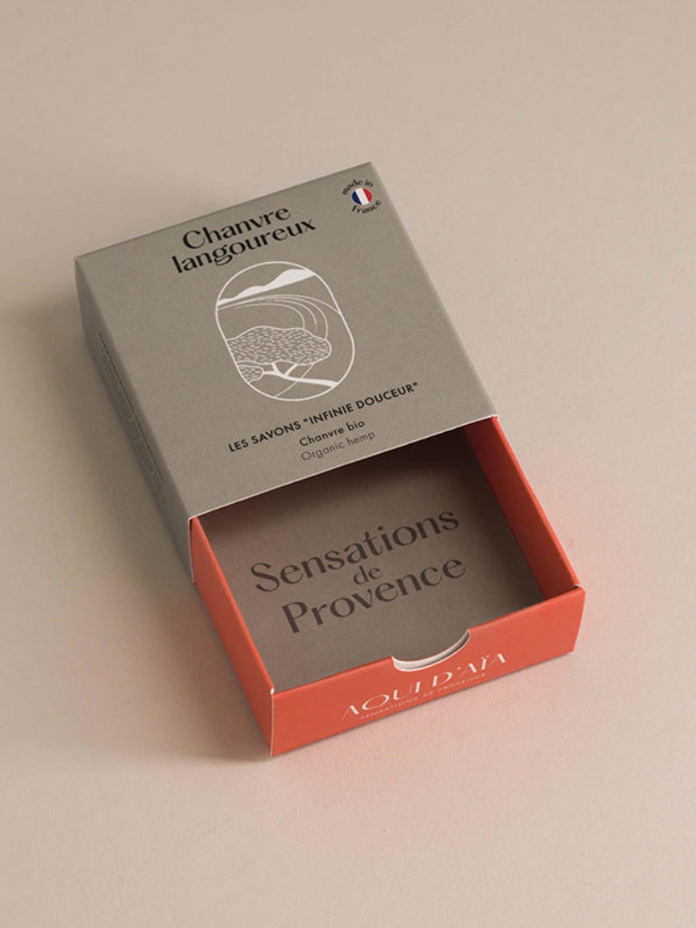 Encased in the signature Infinie Douceur drawer box, this artisanal soap is a celebration of simplicity and efficacy. Crafted with rich hemp oil and a base of olive and coconut oils, it’s entirely free from fragrance and colorants—making it a pure, gentle choice for sensitive skin.