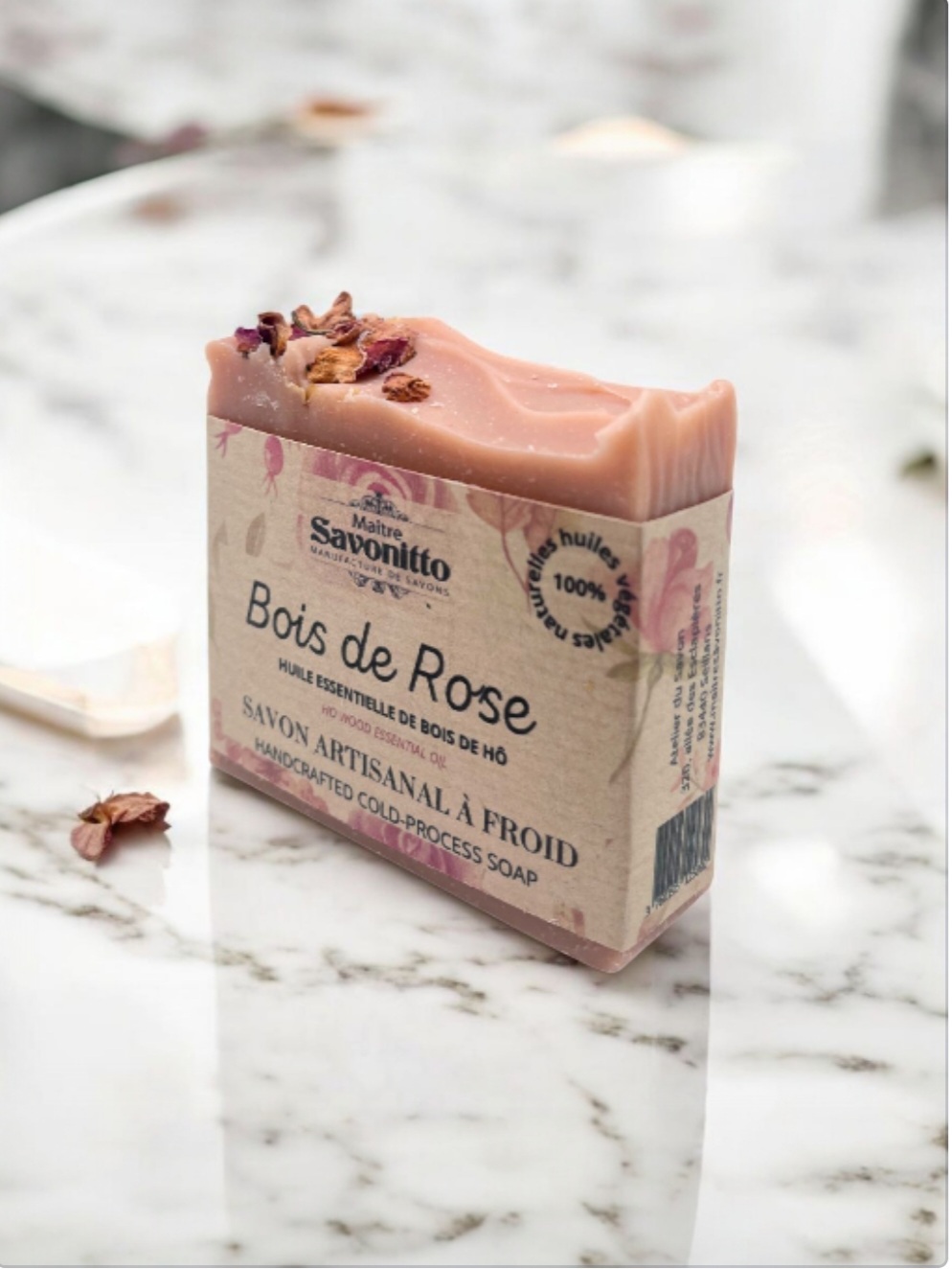 Handcrafted using the traditional cold saponification method, this luxurious soap combines the soothing aroma of Rosewood essential oil with a nourishing base of coconut butter, shea butter, sunflower oil, and rapeseed oil. Enriched with pink clay for gentle purification and adorned with real rose petals, it offers a sensorial experience that’s as beautiful as it is beneficial.