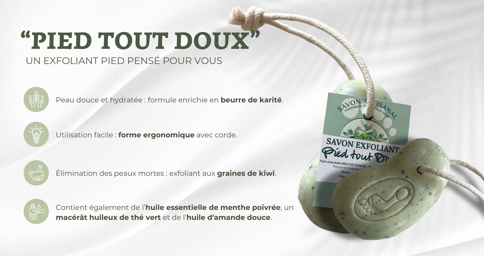 A revitalizing foot care soap designed to gently exfoliate and nourish the skin.
