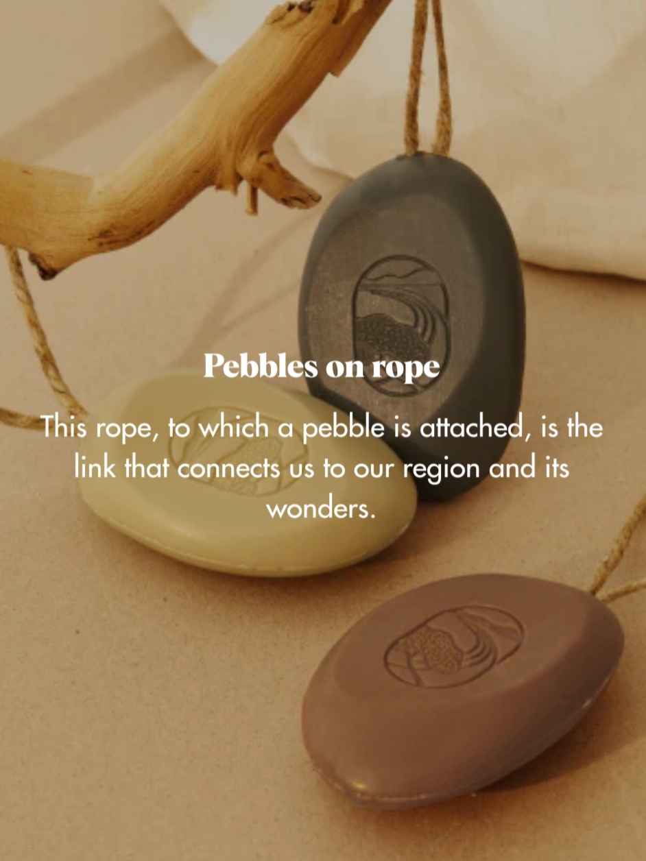AQUI D’AIA Lavandin Abrial Essential Oil Exfoliating Soap Pebble on a Rope – 200g
