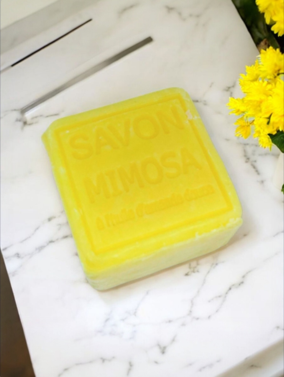 A luxurious cube-shaped soap infused with the soft, floral scent of Mimosa—crafted for a gentle and aromatic cleanse.