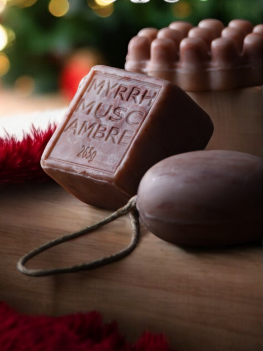A luxurious oval soap infused with warm oriental notes of Musk, Myrrh, and Amber—crafted for a sensorial cleanse and elegant display.