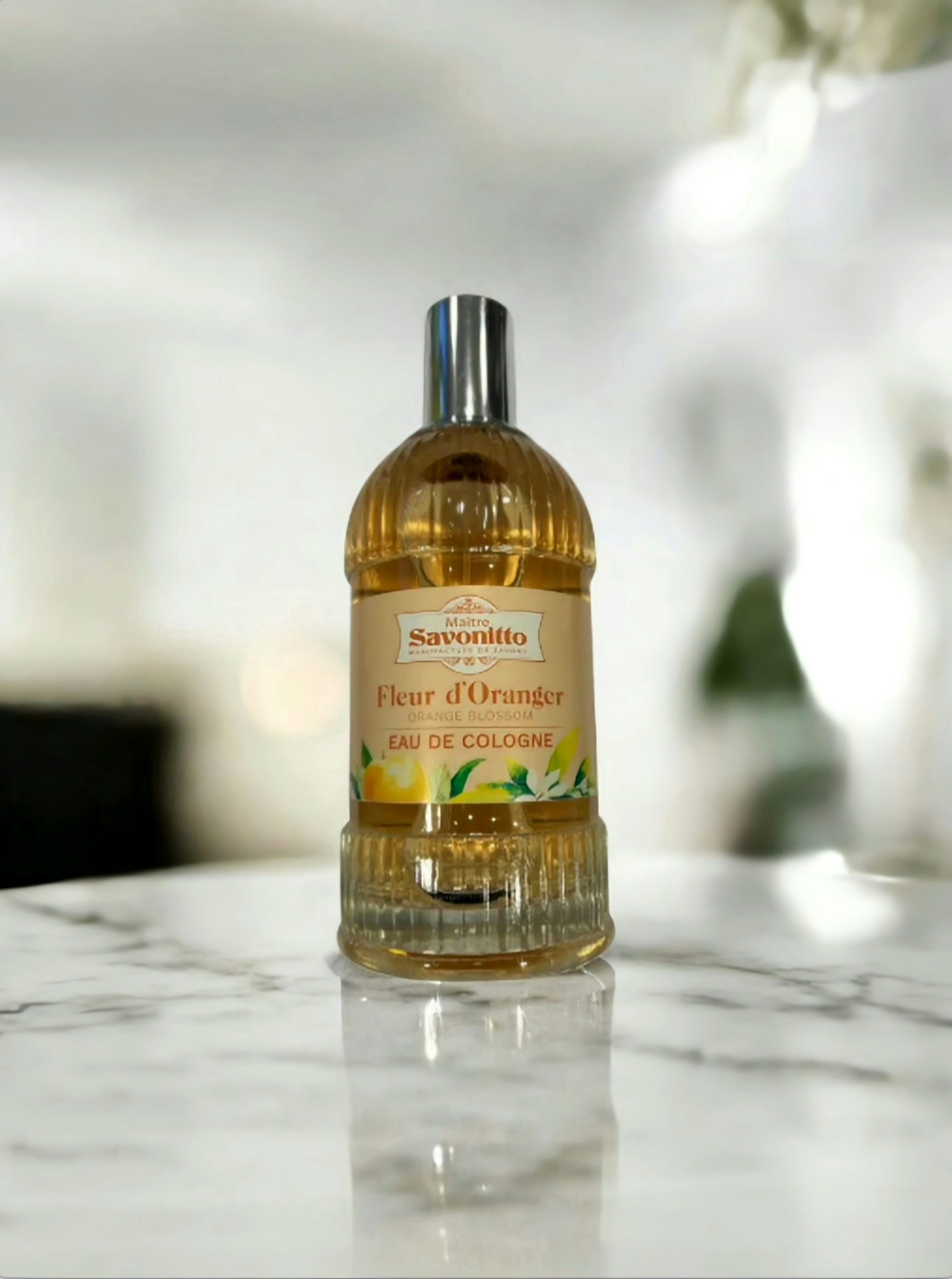 Bask in the radiant charm of orange blossom with this refreshing Eau de Cologne, infused with aromatic notes from Grasse. Designed for both men and women, it offers a soft, uplifting scent that evokes warmth and well-being.